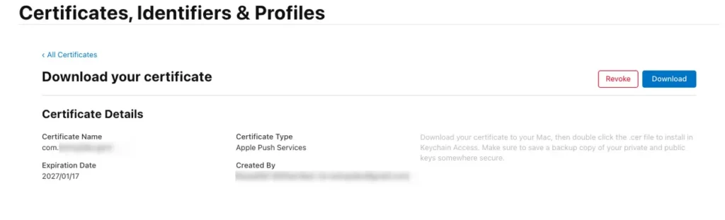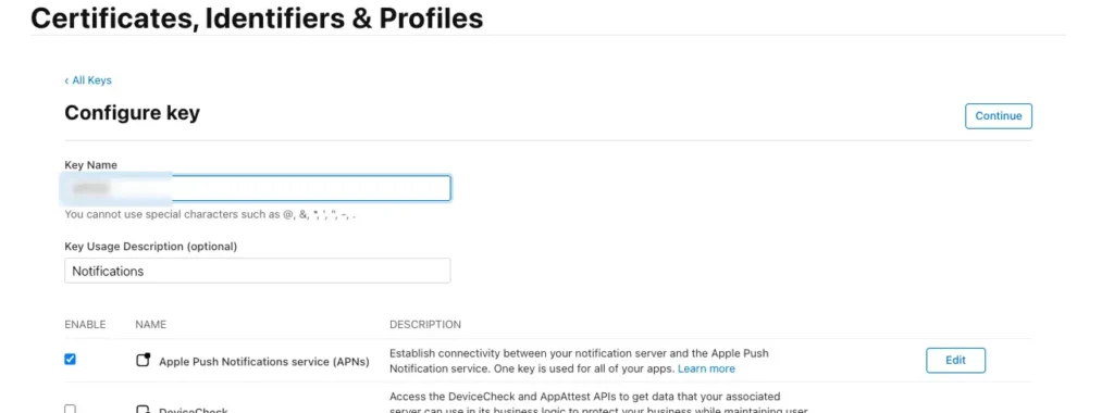 Apple now prefers APNs keys (.p8) over certificates (.p12). Keys are simpler to use and don’t require renewal.
