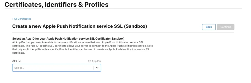 - Open the Apple Developer Portal and navigate to Identifiers → App IDs → Add (+).